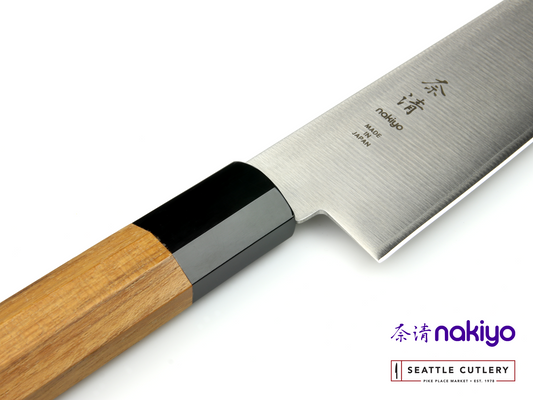 Teak San Mai knives are forged exclusively for Seattle Cutlery by Tojiro in Tsubame, Japan. Using the same premium blades as the Tojiro Zen series, they feature durable handles crafted from teak with a ferrule of water buffalo horn. The blade is forged in the centuries-old san mai ("three-layer") style, combining the strength and edge retention of a hardened VG10 cobalt-alloy core steel with the protection and flexibility of a corrosion-resistant 13 chrome stainless jacket.