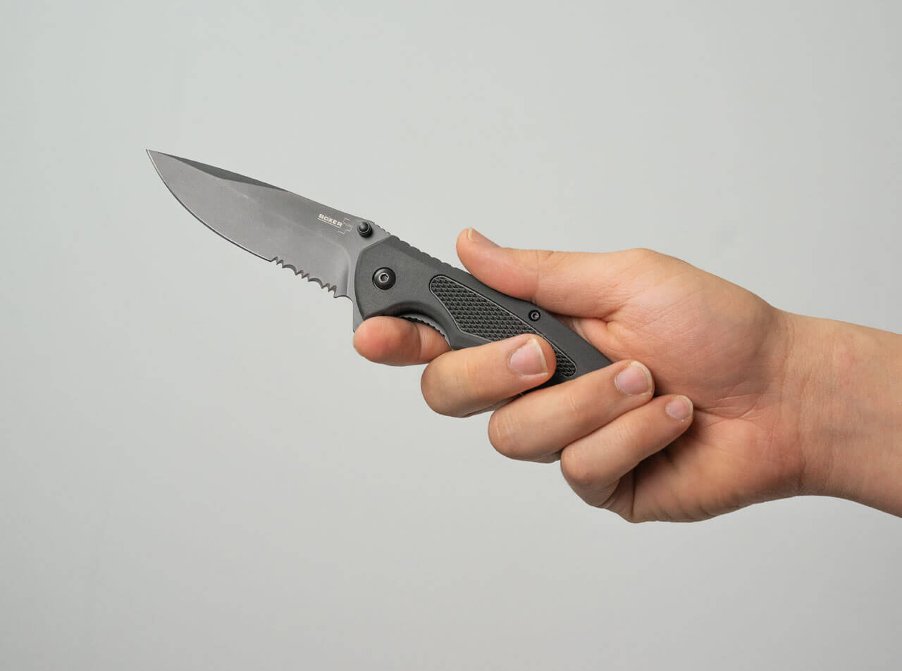 The new version of the Boker Plus Gemini NGA takes the best elements of the original model, suchas the perfect ergonomics, extremely lightweight construction, and assisted opener. For added functionality, a flipper has been added for effortless opening of the rugged D2 steel blade. The handle is made of a fiber reinforced synthetic, which combinesa very light weight with a maximum strength. The partially rubberized surface enhances the secure grip under all conditions. With that, the Boker Plus Gemini NGA Assisted gives the user a perfect knife for everyday carry. With pocket clip.