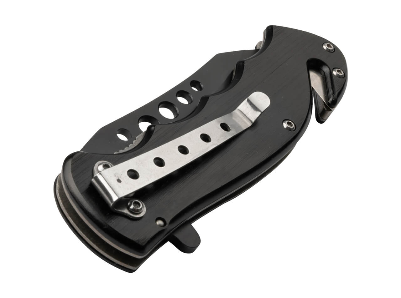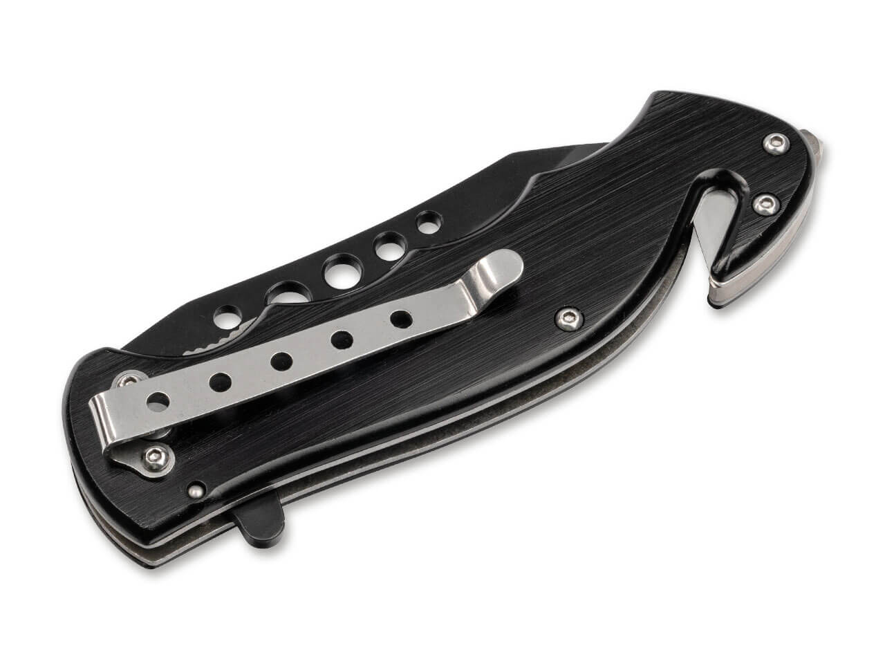 The Magnum Special Forces is a functional rescue knife dedicated to the world-renowned elite units of the American armed forces. The lightweight handle made of black-coated aluminium bears an emblem of the Coats of Arms of the Special Forces. The stainless 440A blade opens with a spring-assisted flipper and is reliably locked by a sturdy linerlock. The bored holes give the blade its own touch and also reduce the weight. At the end of the handle are a glass breaker and a belt cutter, which predestine the knife for any emergency kit. Supplied with a practical deep-carry clip (tip-down).