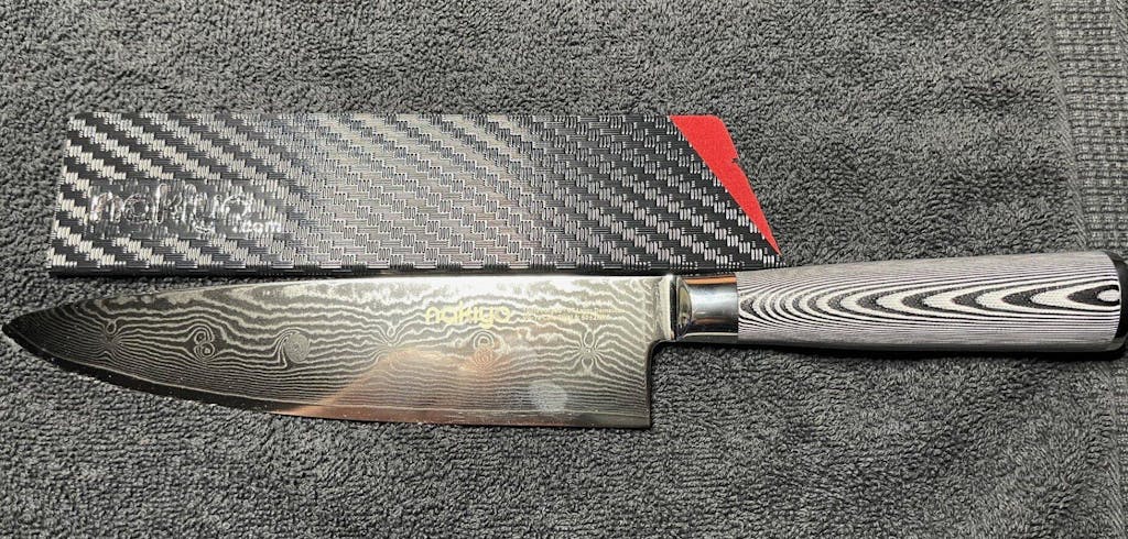 I bought this for my brother, he is a really good cook. Besides UPS sending it across the country for 4400 miles and 15 days. In the end I find a absolutely beautiful Damascus kitchen knife. My brother is going to love this masterpiece. He has always wanted a Damascus knife but could not afford one.