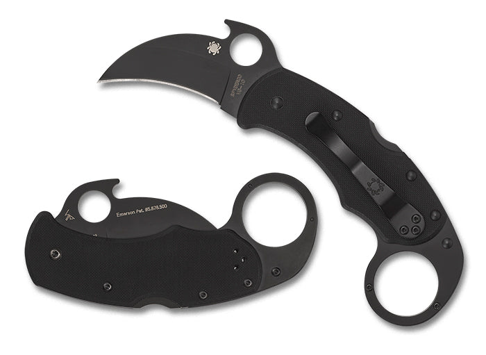 The original Spyderco Karahawk was a unique synthesis of the salient features of the classic Southeast Asian karambit and state-of-the-art modern folding knife design. Now this dynamic design is available in a stealthy all-black version ideal for use in environments where light discipline is a concern.